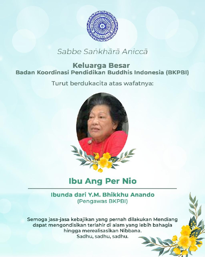 Keluarga Besar BKPBI Mengucapkan Turut Berduka Cita atas Wafatnya Ibu Ang Per Nio Ibunda dari Y.M. Bhikkhu Anando (Pengawas BKPBI)
