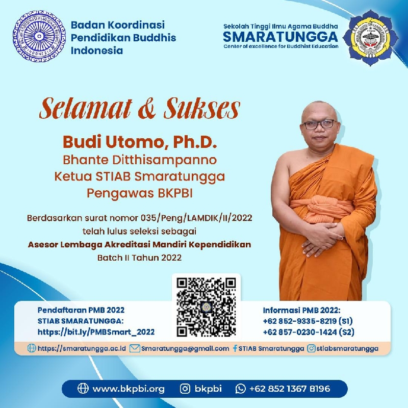 Selamat dan Sukses Budi Utomo, Ph.D. Bhante Ditthisampanno Sebagai Ketua STIAB Smaratungga Pengawas BKPBI